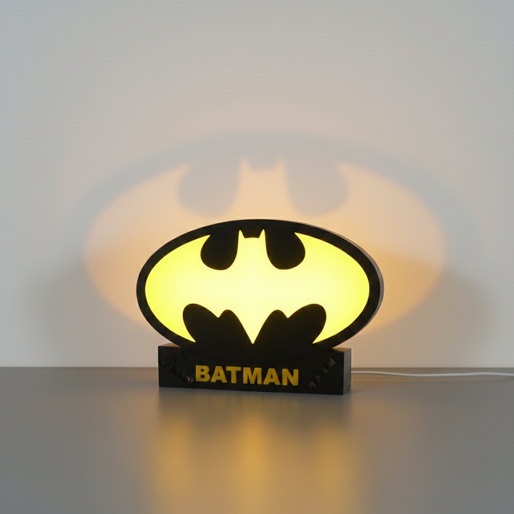 A bold bat-emblem LED light box inspired by classic dark-hero aesthetics. Precision 3D printed and evenly illuminated — perfect for gaming rooms, desks, and collector displays.