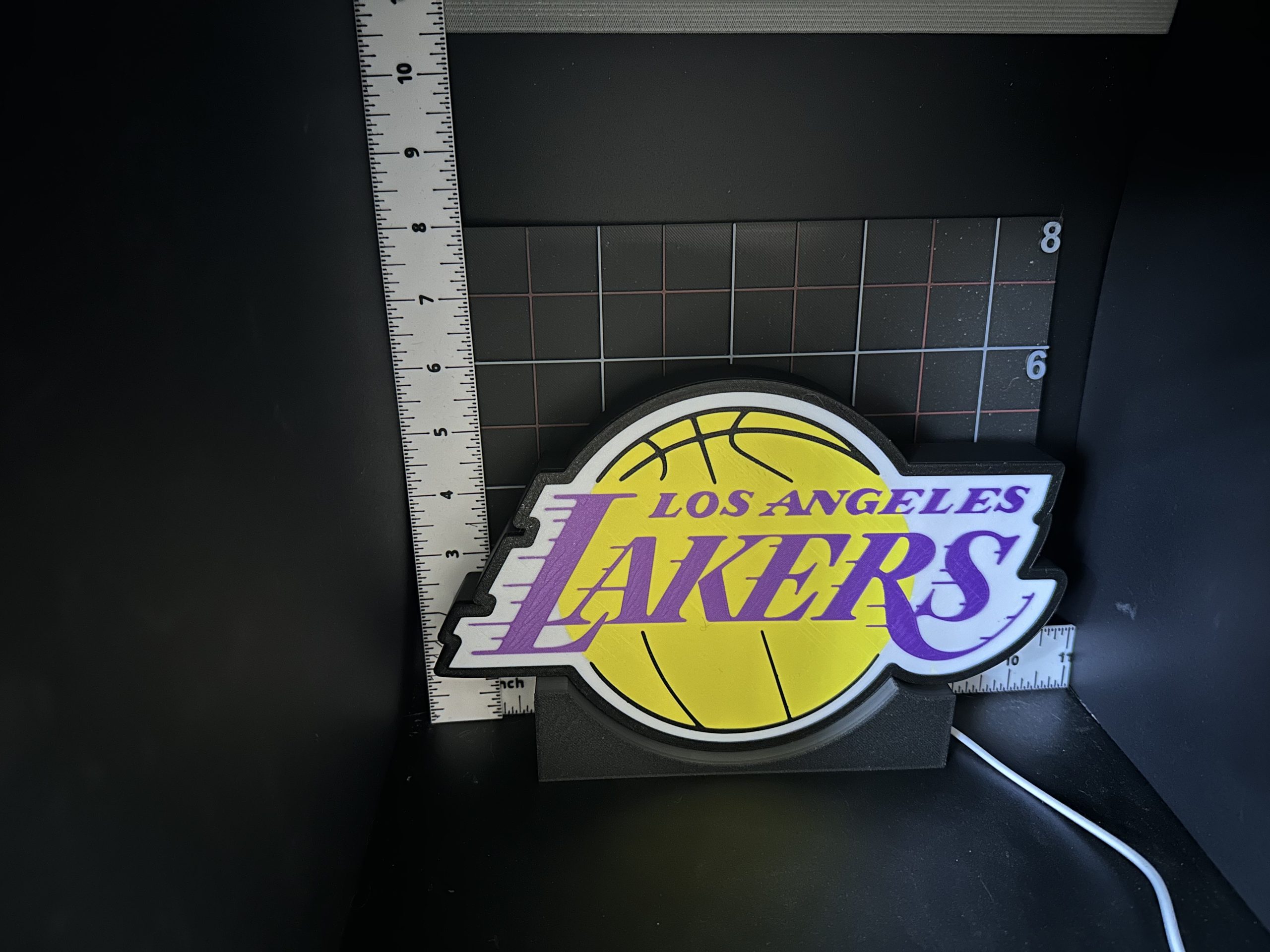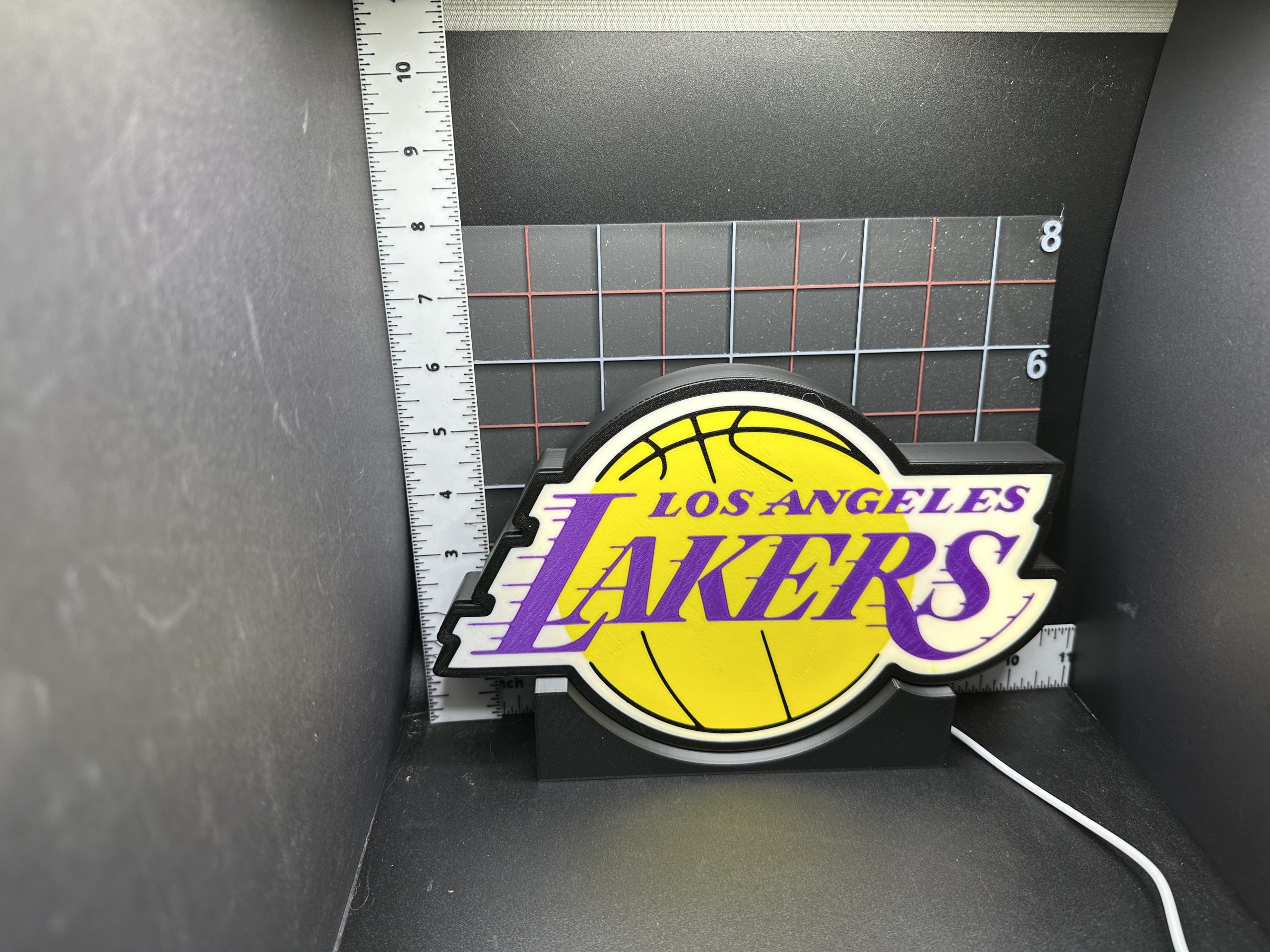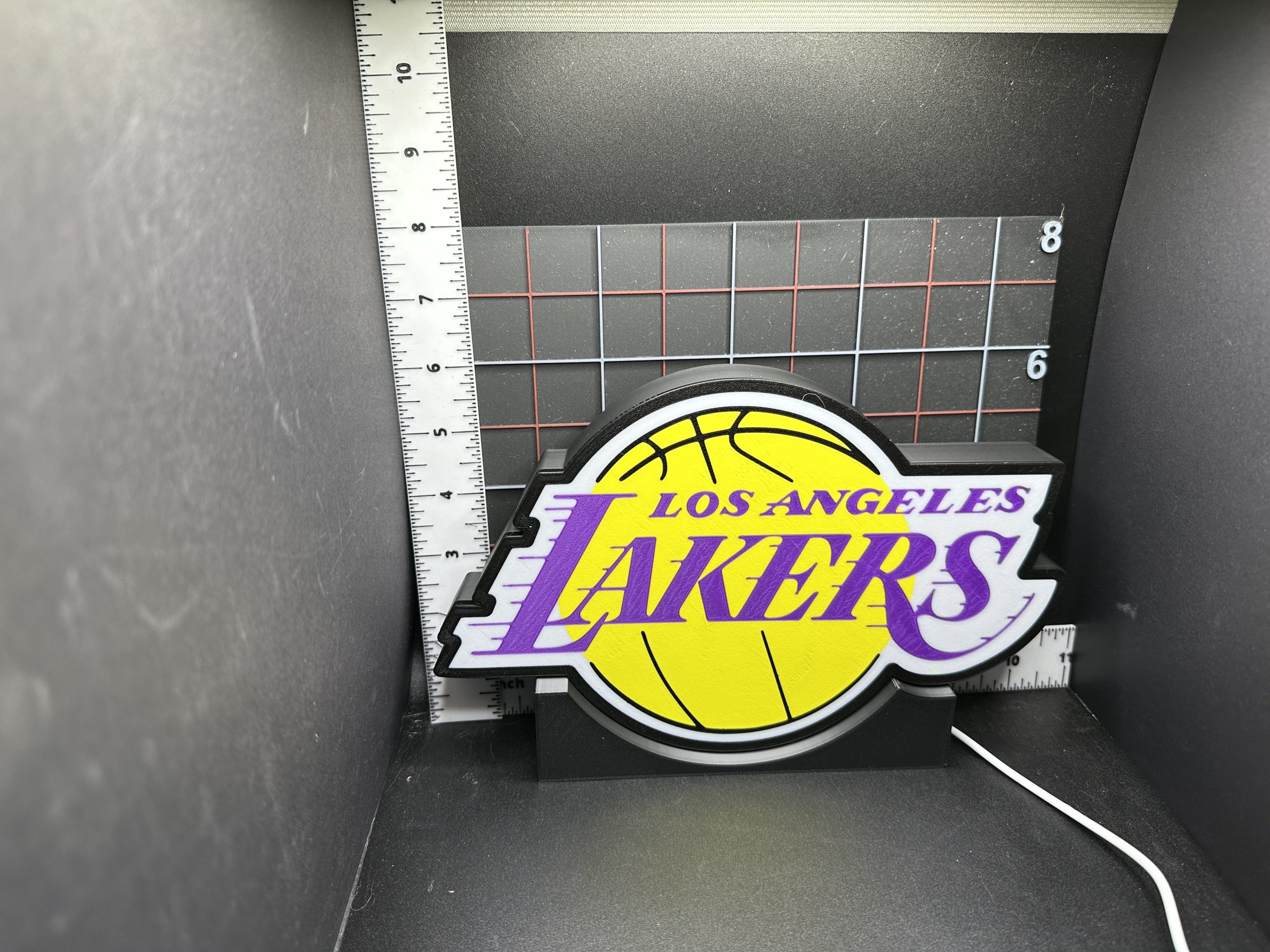 Show off your team pride with this custom Los Angeles Lakers 3D printed sign! Perfect for any fan cave, office, or game-day setup, this piece combines bold colors and sleek design for a standout display.